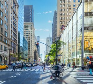 - High-stress conditions for cyclists along a major downtown corridor
